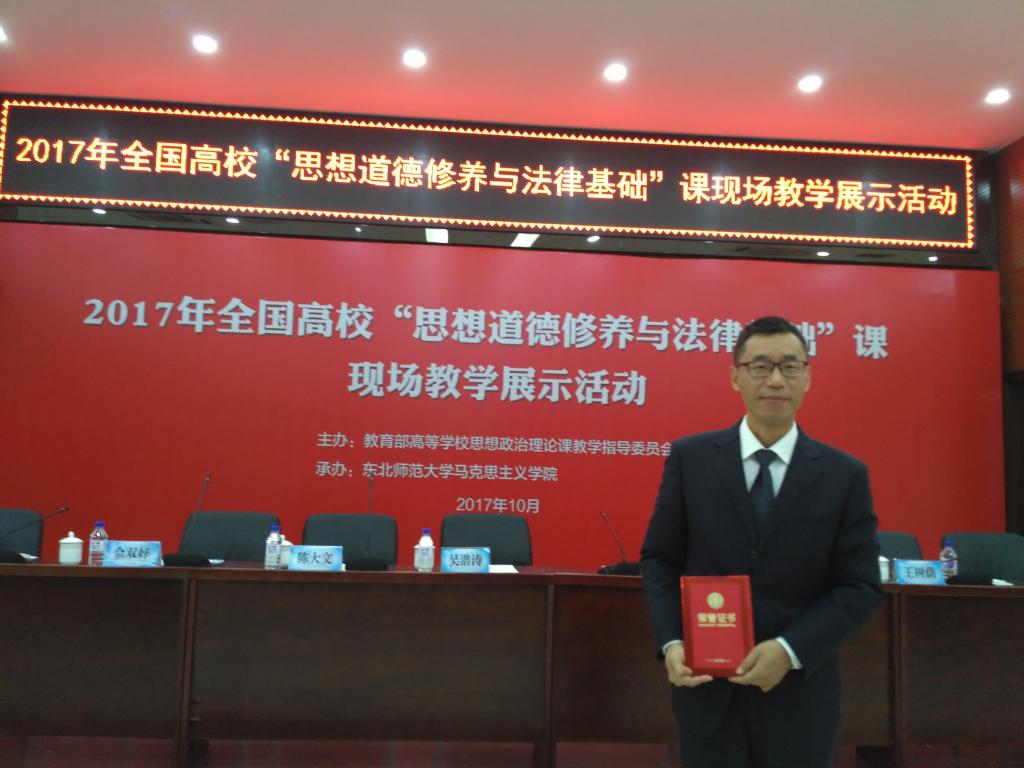 2017年10月14日至15日,由教育部高等学校思想政治理论课教学指导委员会主办的全国高校“思想道德修养与法律基础”课现场教学展示活动在东北师范大学举行。世界杯官网教师李志龙代表山西省参加了现场教学展示,并荣获“全国高校思想政治理论课教学骨干”的荣誉称号。