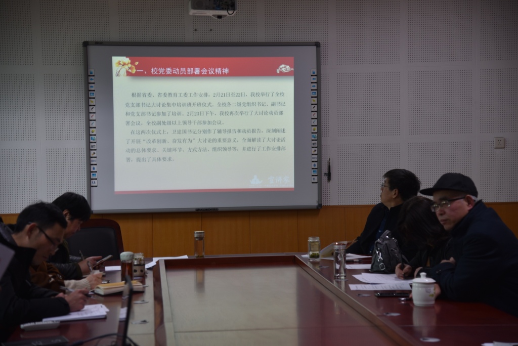 2月24日下午4:30,世界杯官网在A-508多功能室召开“改革创新、奋发有为”大讨论动员会议。全体教职工和学生党员参加,院党委书记王银主持会议。
