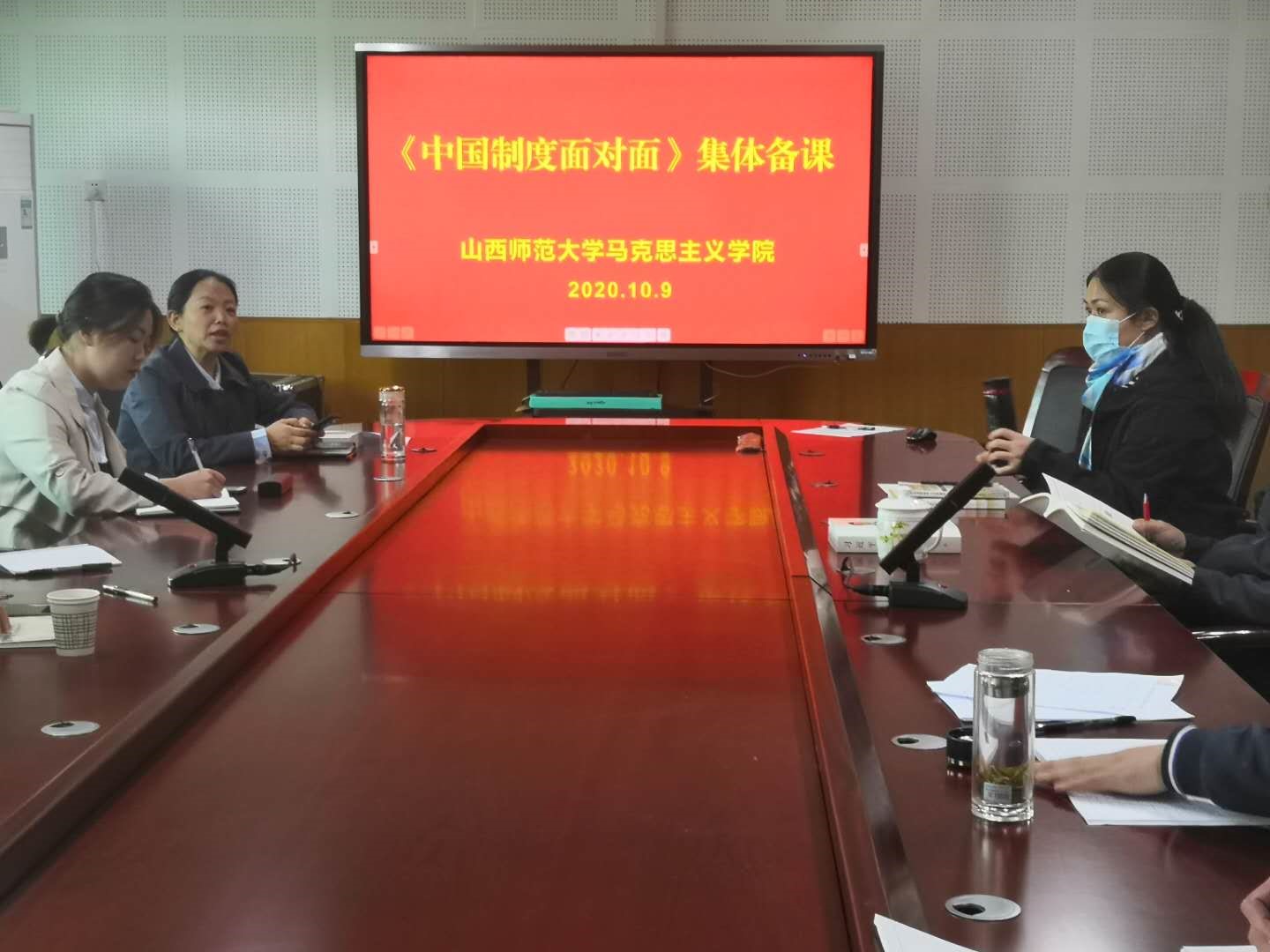 10月2日下午和、10月9日下午,2026世界杯官方合作网站在科学会堂A508会议室举行“中国制度面对面”走进思政课课堂的集体备课。全体教师参加,教学副院长赵改萍主持。运城职业大学李国娟、罗舒贤两位教师于10月9日下午观摩并参加讨论。