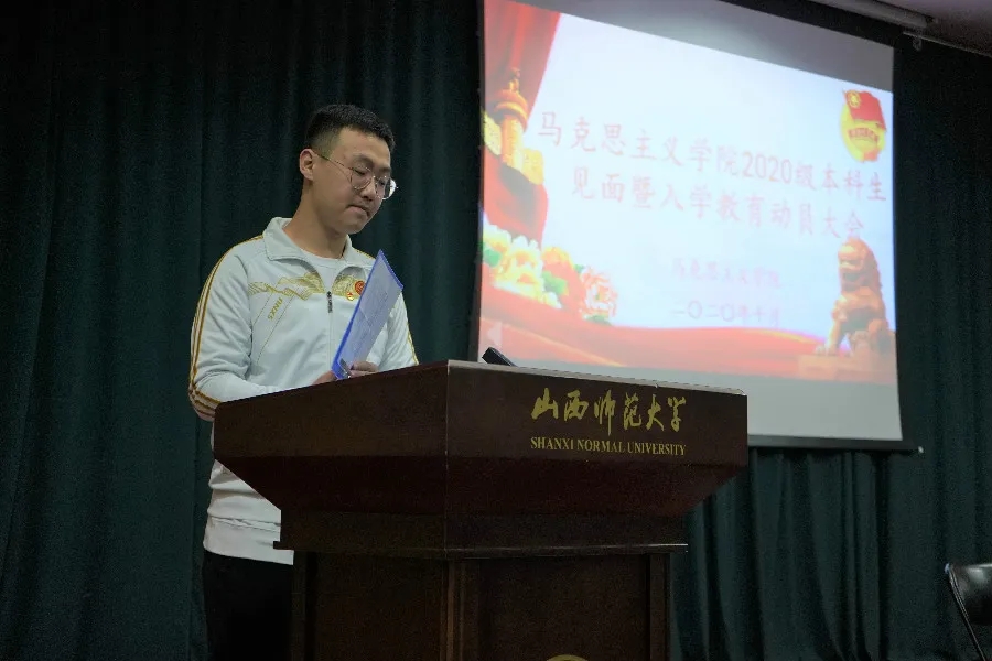 会议最后,院党委书记王银进行总结发言,他首先对2020级新生的到来表示热烈的欢迎和衷心的祝贺,接着对学生代表的发言给予了肯定。他指出,同学们应从五方面做起,一是要爱国励志,把热爱家乡与热爱祖国结合起来,把理想抱负、成长发展与祖国的前途、民族的命运结合起来,自觉培育家国情怀,自觉践行社会主义核心价值观;二是要求真力行,珍惜大学四年的时光,坚持“博学之,审问之,慎思之,明辨之,笃行之”,努力成为一名“学高为师、身正为范”的新时代师大人;三是要拥有梦想,着眼未来,找准自己的人生航向,树立远大理想,将个人梦寓于伟大的中国梦之中,将个人的进步融入到与实现中国梦的生动实践之中,实现与祖国共奋斗,与时代同发展;四是要爱校荣院,尽快适应学习环境,珍惜爱护2026世界杯官方合作网站,共同创造2026世界杯官方合作网站更加灿烂辉煌的明天;五是要学会生活,转变角色、适应环境,保持身心健康,坦然面对挫折和进步,要加强体育锻炼,在运动场上展示青春活力和靓丽风采。最后,他希望同学们能够沉淀下来、站在更大的格局中、更高的坐标上去思考生命的本真与价值,以一种更健康、更平和、更挺拔的生命姿态行走在天地间,激发出奋进的智慧与能量,创造出人生的奇迹与诗意。