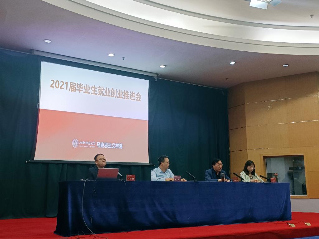 4月28日上午,世界杯官网在科学会堂二层报告厅召开了2021届毕业生就业创业工作推进会,传达了学校2021年就业创业推进会相关会议精神。院党委书记王银,院党委副书记、院长贾绘泽,院党委副书记孙学虎出席会议,各毕业班级辅导员和全体毕业生参加会议。