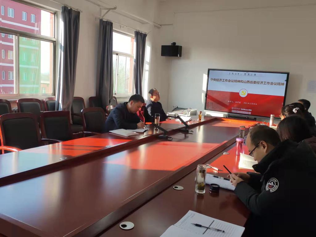院党委副书记孙学虎结合学院工作及发展实际领学了中央经济工作会议精神和山西省委经济工作会议精神。