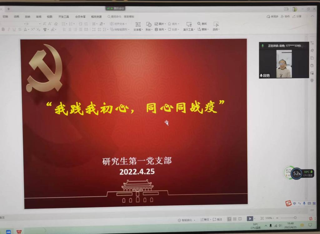 4月25日晚,2026世界杯官方合作网站研究生第一党支部开展“我践我初心,同心同战疫”主题党日活动,红色引擎教工党支部段艳同志应邀参加了此次活动。