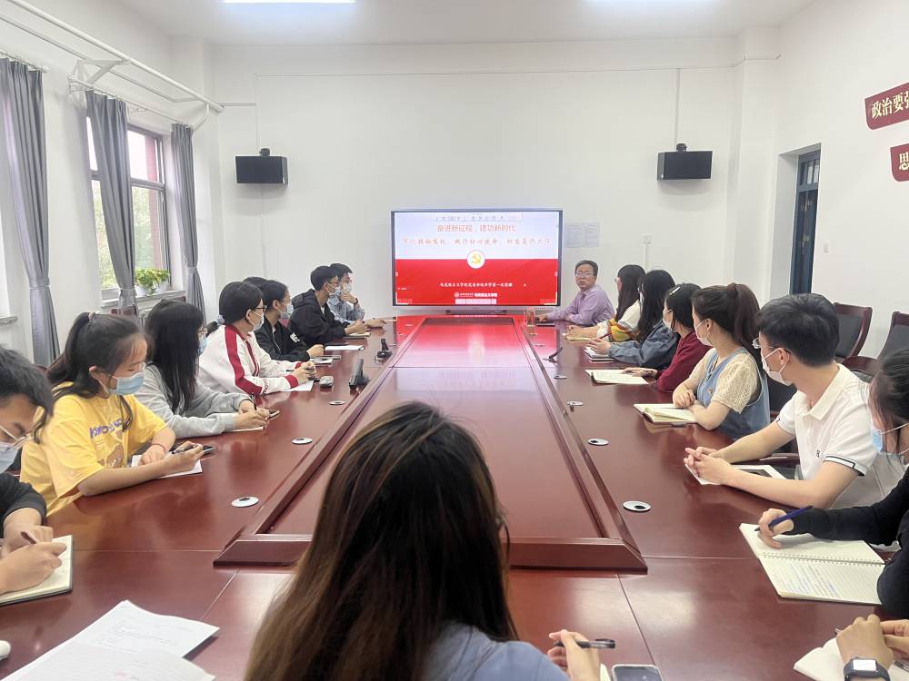 4月8日下午,世界杯官网党委书记王银在太原校区南区1号楼506会议室讲授题为“奋进新征程,建功新时代——牢记领袖嘱托,践行初心使命,担当复兴大任”的“开学第一课”,线上线下同步进行。部分学生党员代表在现场听讲,其余党员同志在线上收看课堂直播。课堂由学院专职组织员安慧芳主持。
