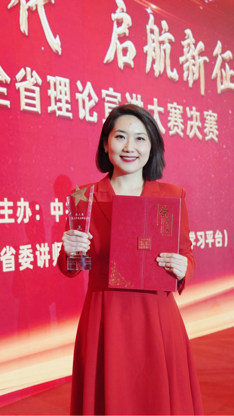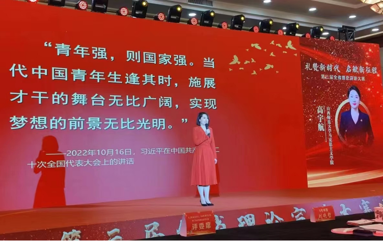 在本次“礼赞新时代启航新征程”理论宣讲大赛中,高宇航老师宣讲的主题是《用奋斗点亮青春》,她紧紧围绕党的二十大精神,结合自身工作实际,生动讲述了作为一名青年思政课教师在教学科研工作中的成长变化,以小切口呈现大主题,以小故事反映大变化,用通俗易懂的语言阐释党的创新理论,传递了建功新时代的青春力量,彰显了当代青年的时代风采。