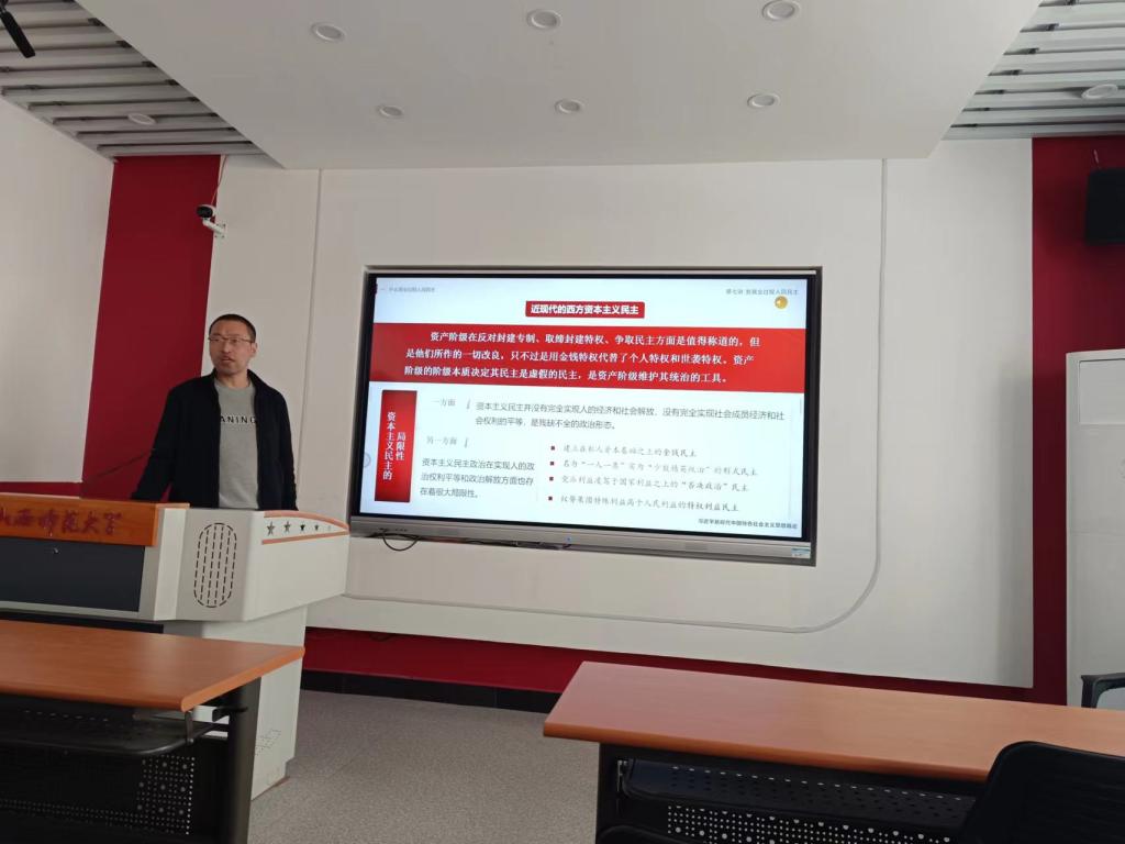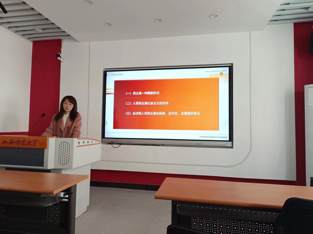 3月17日下午,习近平新时代中国特色社会主义思想概论教研室在八号楼虚拟教室进行集体备课。此次备课围绕“发展全过程人民民主”开展说课,副院长赵改萍院长及全体教研室教师参加,会议由教研室主任胡志远主持。