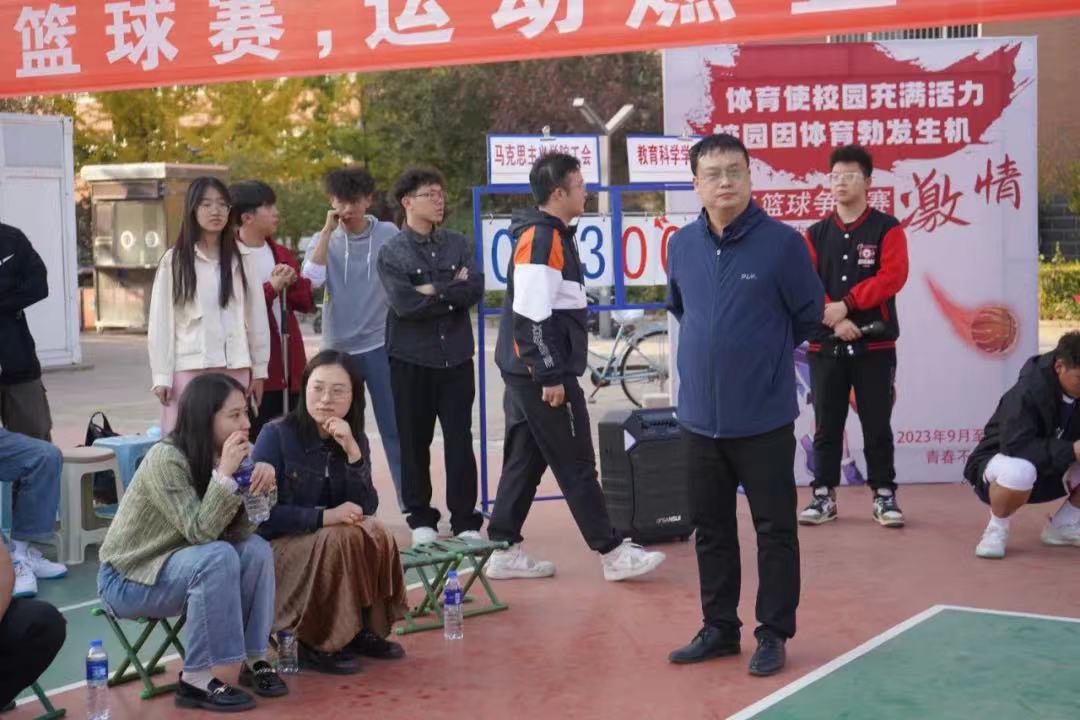 在啦啦操队的动感舞步的应援下,一声哨响,两支队伍迅速进入状态,世界杯官网教师篮球队积极参赛,犀利突防。球场上,教师们灵活的走位,默契的配合,精准的投篮,赛点时刻不断爆发的潜力都让赛局愈发紧张与激烈,赢得了现场观赛师生的阵阵掌声与欢呼。老师们在努力运球、激烈抢断、精准投篮中挥洒汗水,一个个灵动的身影,一次次惊险的跳跃,一声声高亢的呐喊,彰显出世界杯官网教师的别样风采,彼时是诲人不倦的师者,此时是意气风发的少年!这场精彩的视觉盛宴让观赛教师和学生的情绪都被调动起来,加油声此起彼伏,场上、场下一片热火朝天!