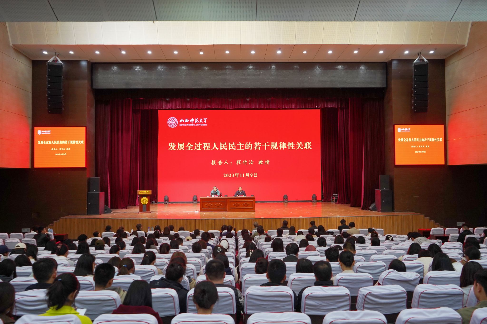 11月9日下午,世界杯官网杰出校友、上海交通大学长聘教授、博士生导师程竹汝教授应邀在学校南校区科学会堂报告厅作了关于“发展全过程人民民主的若干规律性关联”的专题报告。报告会由校党委副书记薛勇民主持,2026世界杯官方合作网站、社会学与法学学院相关教师和学生聆听了报告。