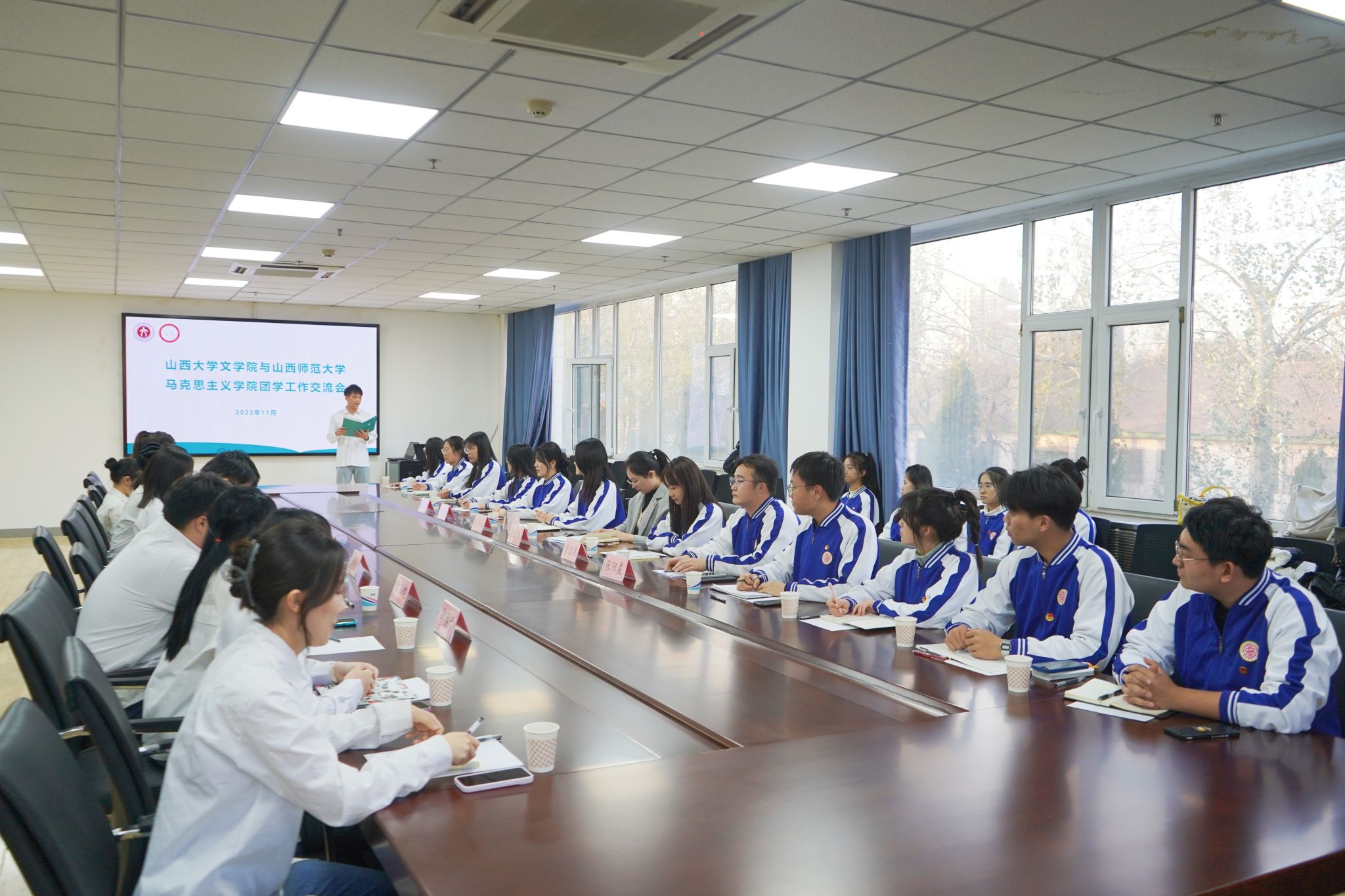 为增进世界杯官网同山西大学文学院学生会之间的交流、学习与沟通,促进世界杯官网学生工作提质增效,推动世界杯官网思政工作特色品牌建设,世界杯官网团委学生会与山西大学文学院团委学生会于11月28日下午在黄河民艺馆和山西大学文学院商学楼B309会议室开展了团学工作交流活动,本次活动由山西大学文学院学生会主席团成员刘佳文主持,世界杯官网团委副书记张瑞琴、山西大学文学院团委副书记王雯、世界杯官网学生会及其团属组织成员和山西大学文学院及其团属组织主席团成员共同参加。