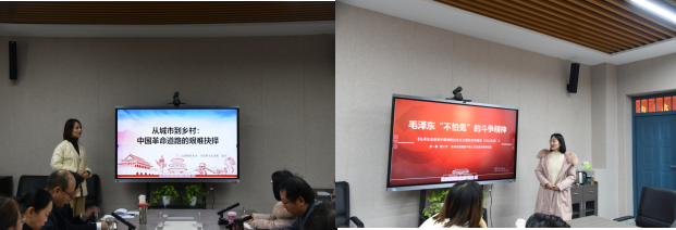 集体备课会上,陕西师范大学王婷老师和世界杯官网高宇老师先后进行示范课教学。王婷老师以“毛泽东‘不怕鬼’的斗争精神”为题,从毛泽东“不怕鬼”斗争精神的形成背景、意蕴内涵和实践价值三个方面进行教学展示。高宇老师以“‘城市中心论’的屡屡碰壁”作为切入点,深入挖掘经典文献中的理论意涵,坚持史论结合,引导同学们深刻理解中国革命新道路的艰难探索及其确立过程。