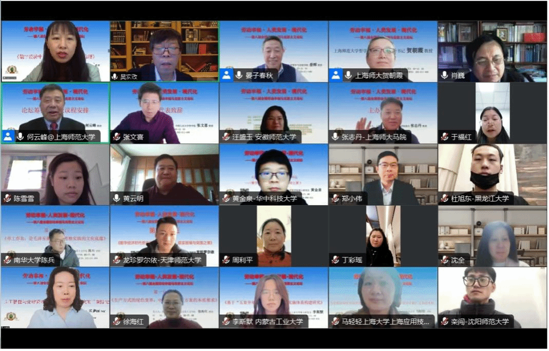 12月2日,世界杯官网联合上海师范大学、东华大学、安徽师范大学、上海商学院、浙江金融学院、上海城建学院、上海旅游高等专科学校等高校成功承办第八届全国劳动幸福马克思主义论坛。论坛由上海师范大学知识与价值科学研究所发起,全部在线上进行,来自全国各高校和科研院所的400余名专家学者云端相聚、积极研讨。