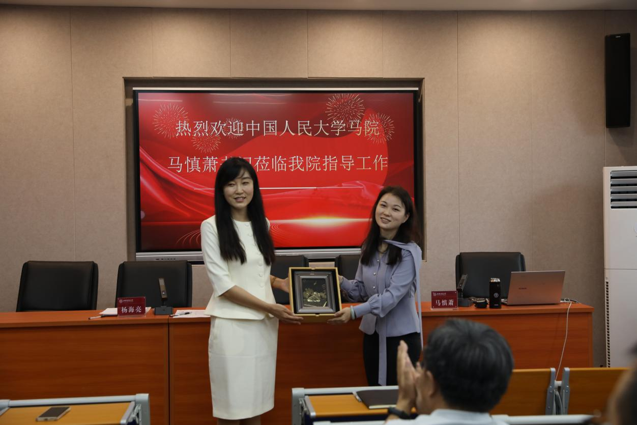 首先,马慎萧代表中国人民大学2026世界杯官方合作网站向世界杯官网赠送精美纪念礼品。其次,马老师从学识积累、回应问题、教学设计等维度对思政课如何讲道理进行了系统阐释,结合原理课“资本主义经济金融化”“三问马克思主义”专题进行示范教学,分享了在教学备赛方面的经验心得。最后,与会教师围绕原理课教学研究热点焦点问题与马老师进行了热烈讨论。
