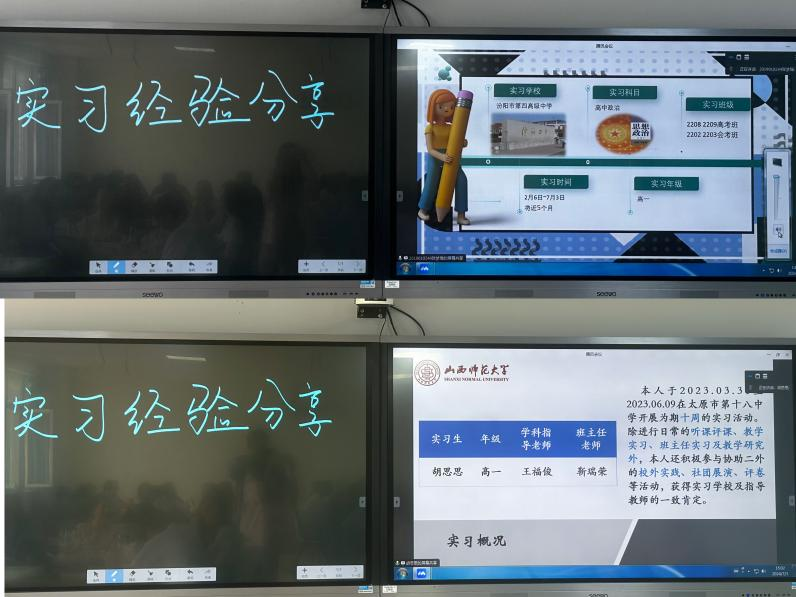 7月2日上午,太原市实验中学校李丽老师以《如何做好教学设计》和《中学政治教材分析》为题,进行了两堂引人入胜的专题授课,为同学们分享了宝贵的教学经验。下午,太原市育英中学校赵园园老师以《班级管理与沟通技巧——班主任的“修炼宝典”》为题,通过讲述自己的从教经历,从“三无”、“三有”和“无为”三境界为大家传授自己的“修炼宝典”。随后,太原市第十八中学校文综组组长王福俊老师以《实习期间的教科研探索》为题,讲授了何为教科研、教科研的现状以及如何在实习期间进行教科研等问题,鼓励同学们在实习过程中不断从“思”、“学”、“研”、“训”和“赛”五个方面开展教科研活动,主动反思,不断改进。