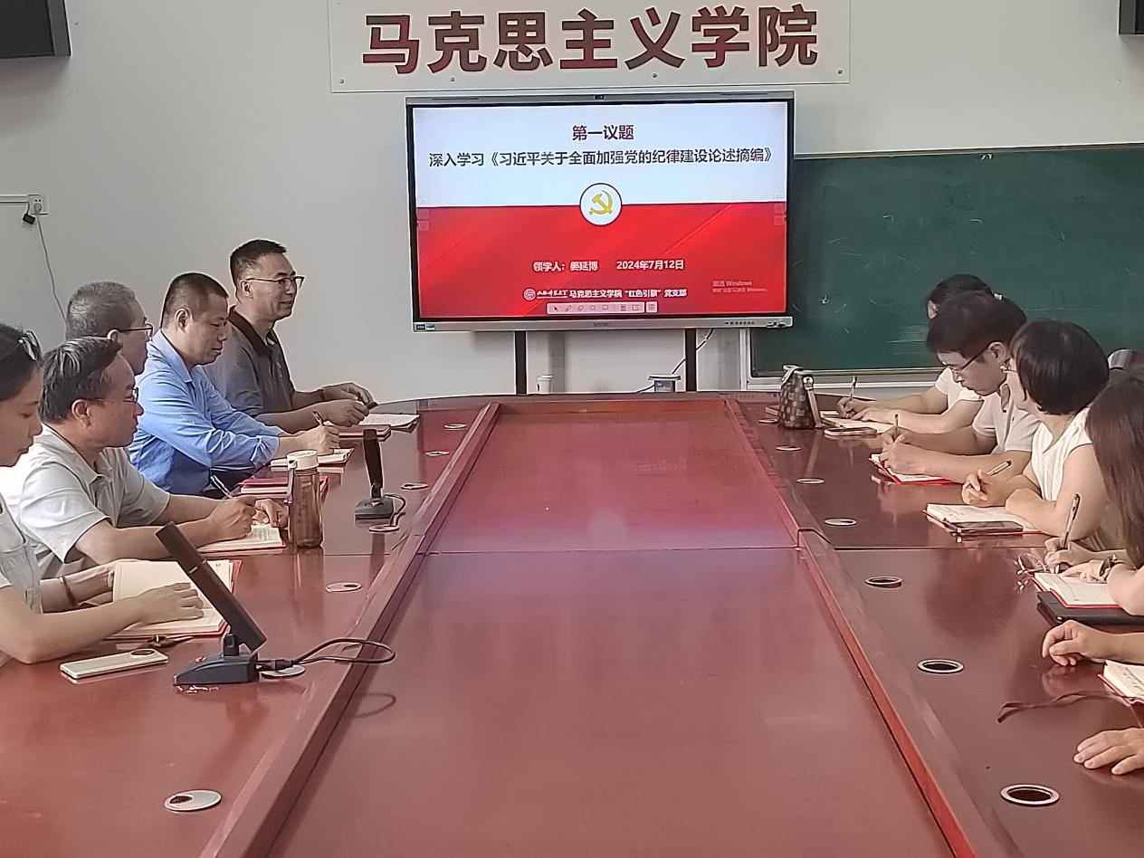 7月12日下午,遵循校院《党纪学习教育实施方案》及月度规划,2026世界杯官方合作网站“红色引擎”党支部举办了一场专题学习会,深入研习《习近平关于全面加强党的纪律建设论述摘编》。此次活动旨在深化支部党员的政治觉悟与纪律认知,以永远在路上的清醒推进全面从严治党向纵深发展。