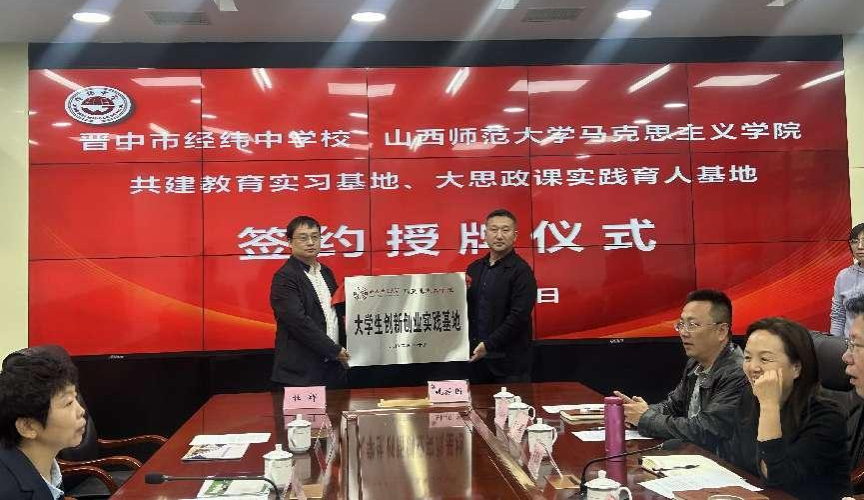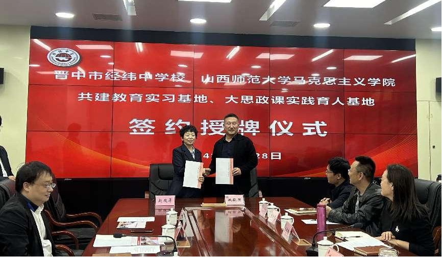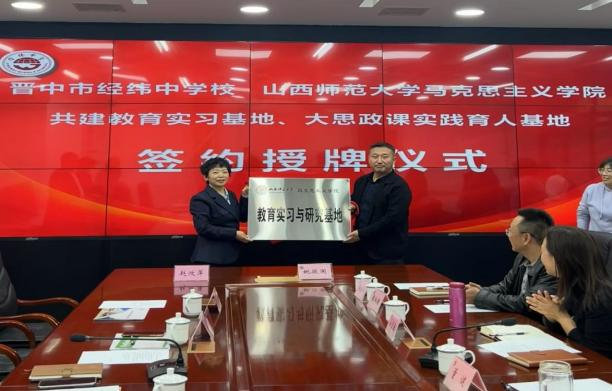 10月28日下午,世界杯官网与晋中市经纬中学校共建教育实习与研究基地、大中小学思政课一体化建设基地、大学生创新创业实践基地签约授牌仪式在经纬中学校举行。仪式由经纬中学校副校长王宏主持,世界杯官网常务副院长(正处级)赵改萍、党委副书记杜辉、副院长张昭、副院长杨海亮、思政系主任贾蕾以及经纬中学校领导班子参加。
