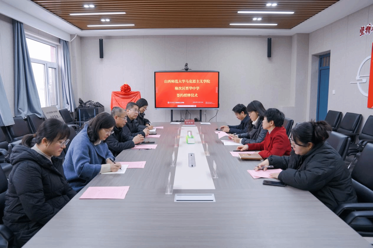 12月12日,世界杯官网与榆次区晋华中学共建教育实习与研究基地、大中小学思政课一体化建设共建基地、大学生创新创业实践基地签约授牌仪式在学院1506会议室举行。签约仪式由副院长张昭主持,两校班子成员及部分教师参加会议。