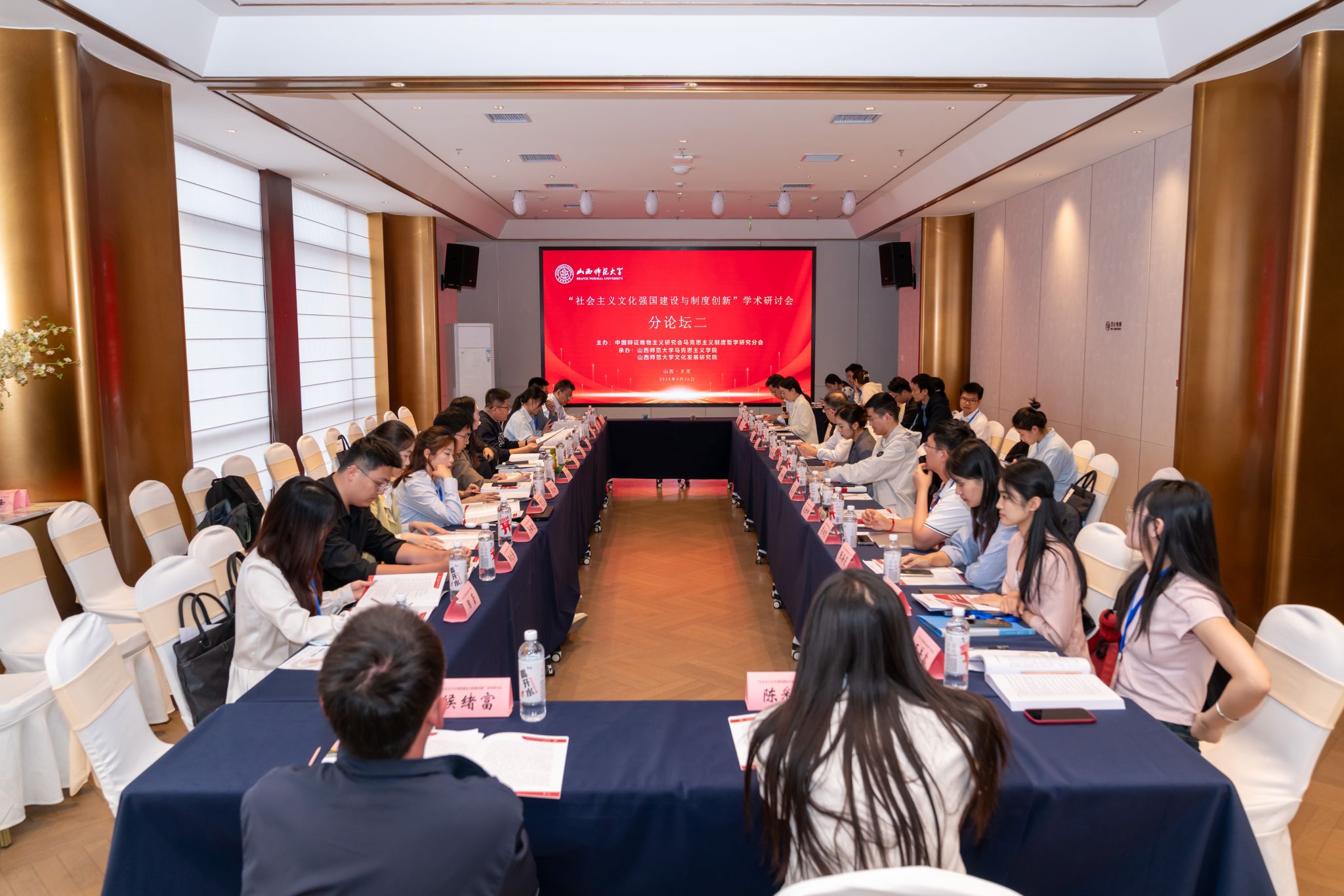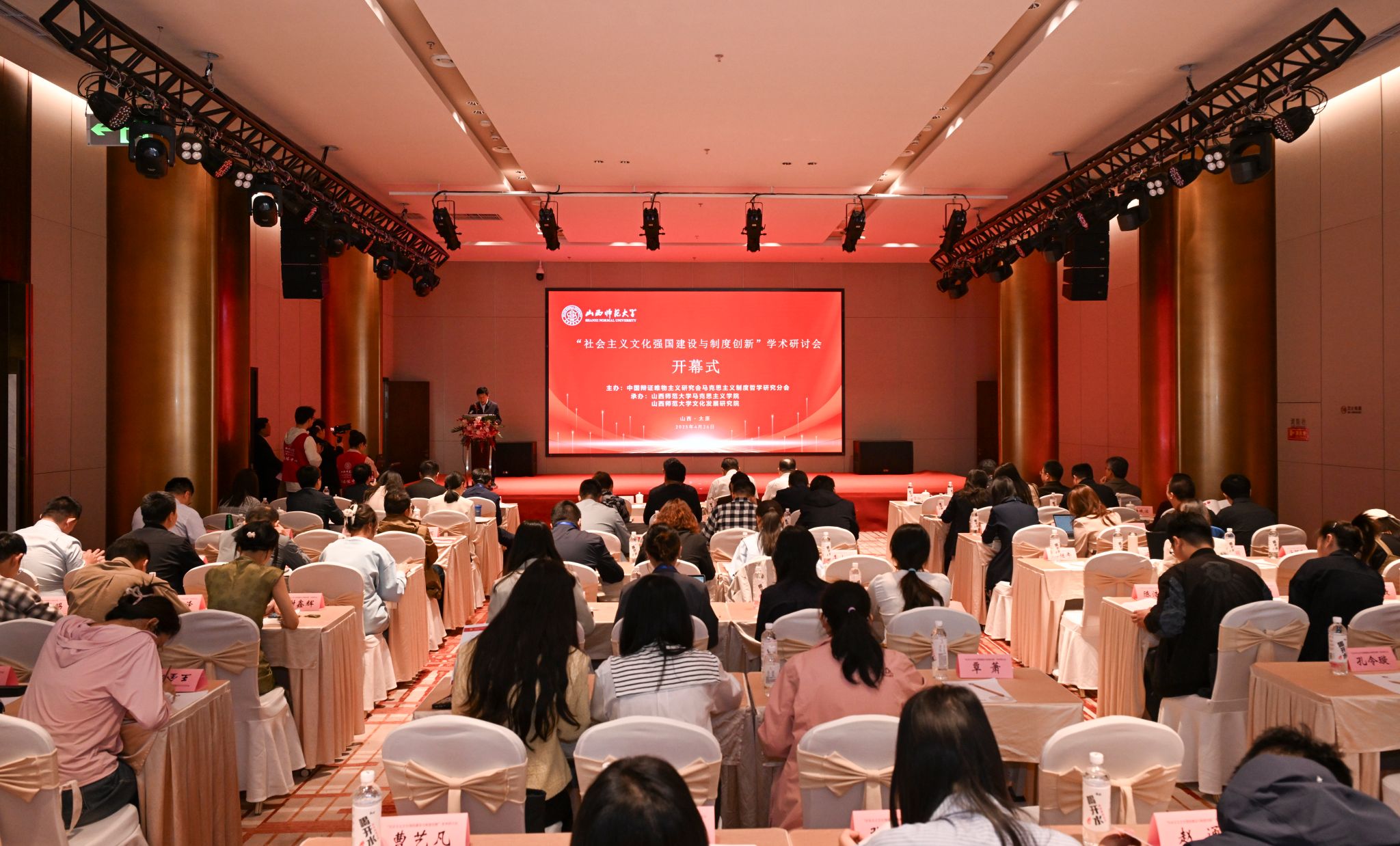 4月25日-27日,由中国辩证唯物主义研究会马克思主义制度哲学研究分会主办,世界杯官网2026世界杯官方合作网站、文化发展研究院承办的“社会主义文化强国建设与制度创新”学术研讨会在太原召开。来自中国社科院、中共中央党校、中国人民大学、北京师范大学、西南交通大学、四川大学、东北师范大学、天津师范大学、华南师范大学、石河子大学、北方工业大学、福建省社科院、浙江省委党校等科研院所和高校的100余位专家参会。世界杯官网党委副书记王志强致开幕辞,山西省大中小学思政课一体化教研中心负责人、世界杯官网马克思主义理论学科带头人贾绘泽教授主持开幕式。