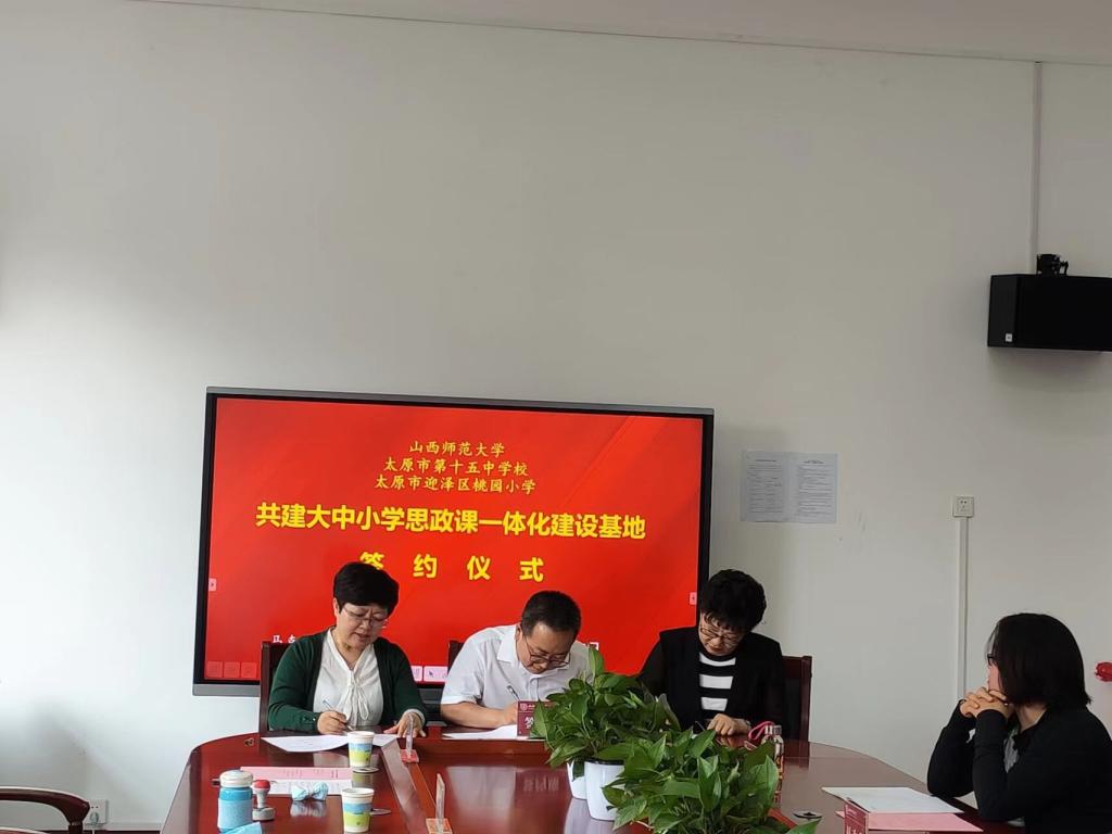 为进一步落实好立德树人根本任务,构建全员、全过程、全方位的“大思政”育人格局,5月25日上午,世界杯官网与太原市第十五中学校、太原市迎泽区桃园小学在南区1号楼506会议室举行“大中小学思政一体化合作共建”签约揭牌仪式。会议由世界杯官网2026世界杯官方合作网站党委书记王银主持。