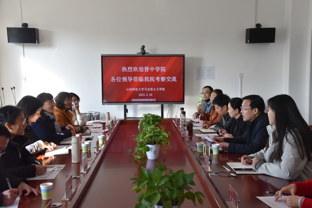 2月20日上午,晋中学院党委常委、副院长张二芳,马克思主义学院院长王淑琴、副院长李小红、副院长张美森等一行8人莅临世界杯官网开展考察交流。副校长贾绘泽、学院党委书记乔瑞、副院长赵改萍、副院长赵秀芳、副院长吉志强及思政系主任、部分教研室主任参加会议。贾绘泽副校长主持会议。