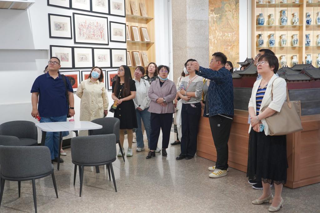 活动第一项,刘琦名师工作室一行22人参观了世界杯官网戏曲博物馆,走过“百米”思政文化街,感受了校园浓厚的文化气息和积极向上的思政氛围。参观活动由世界杯官网副院长赵秀芳、思政系主任杨海亮、副教授张慧玲陪同。