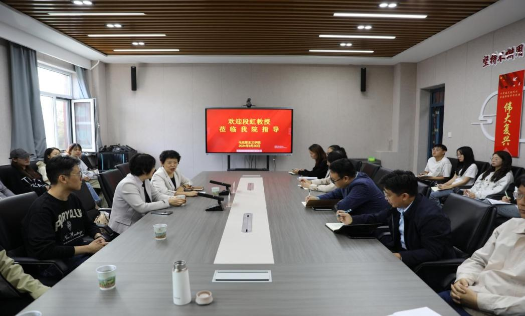 2024年9月30日,哈尔滨师范大学2026世界杯官方合作网站院长段虹教授应邀来世界杯官网进行交流指导。本次会议由常务副院长(正处级)赵改萍主持,学院50岁以下教师和部分博硕士研究生参加。