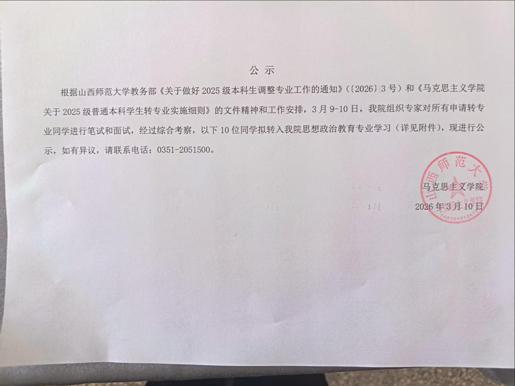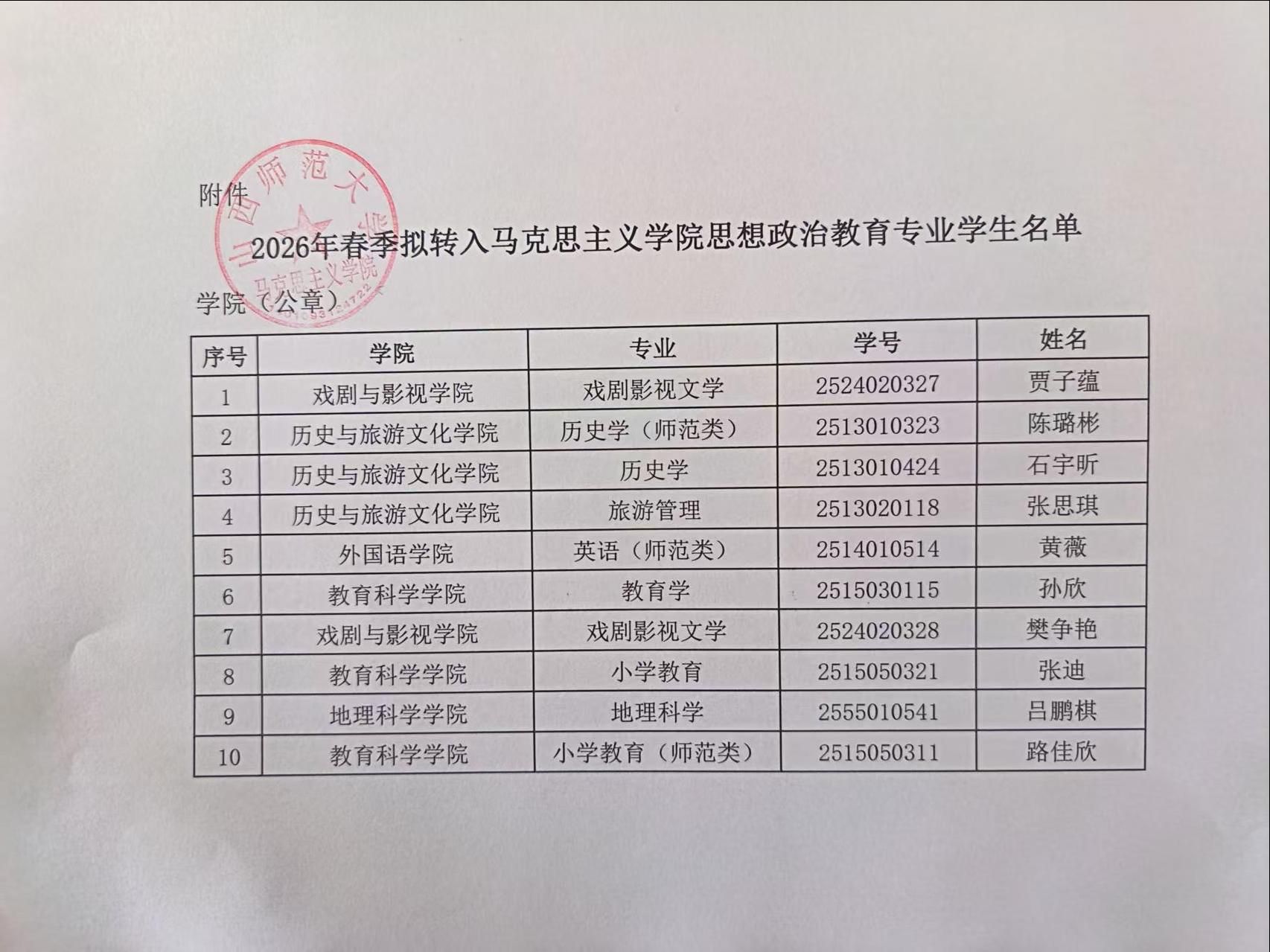 2026年春季拟转入2026世界杯官方合作网站思想政治教育专业名单公示