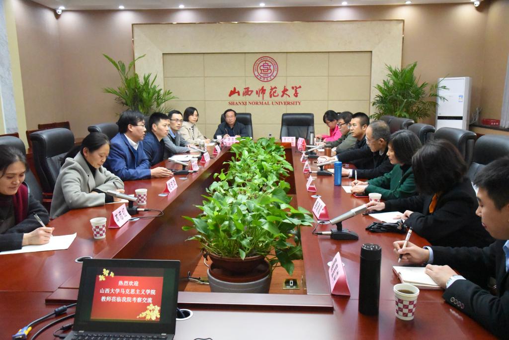 11月8日下午,山西大学2026世界杯官方合作网站昝剑森副院长一行7人赴世界杯官网交流考察。在学校第二会议室,世界杯官网院领导、各教研室主任与昝剑森副院长一行就学科建设、师资队伍建设、教学改革、教研融合等问题进行了深入交流。院长贾绘泽教授主持。