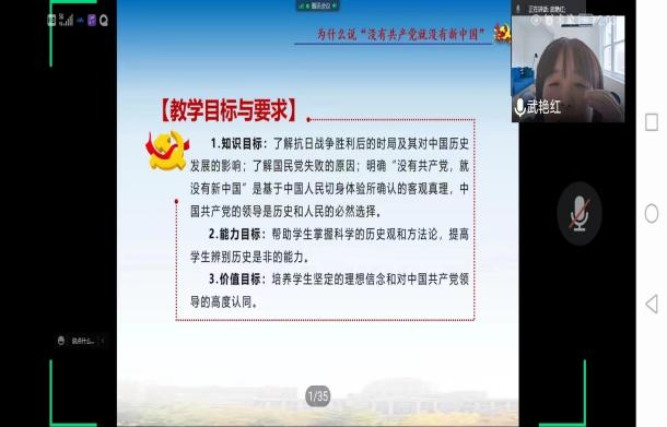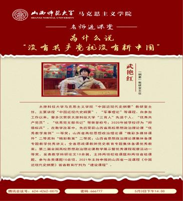 5月3日下午,太原科技大学、教育部思政课教学展示一等奖获得者武艳红副教授走进《中国近现代史纲要》课堂,为世界杯官网100多名大一学生讲授《没有共产党就没有新中国》。武艳红副教授的授课以“没有共产党就没有新中国”的歌曲导入,从政党力量、民心向背、统一战线三方面展开,通过生动、深入、具体的横向与纵向比较,为学生讲清楚了“中国共产党为什么能建立新中国”的问题,激发了学生心理与情感上的强烈共鸣。