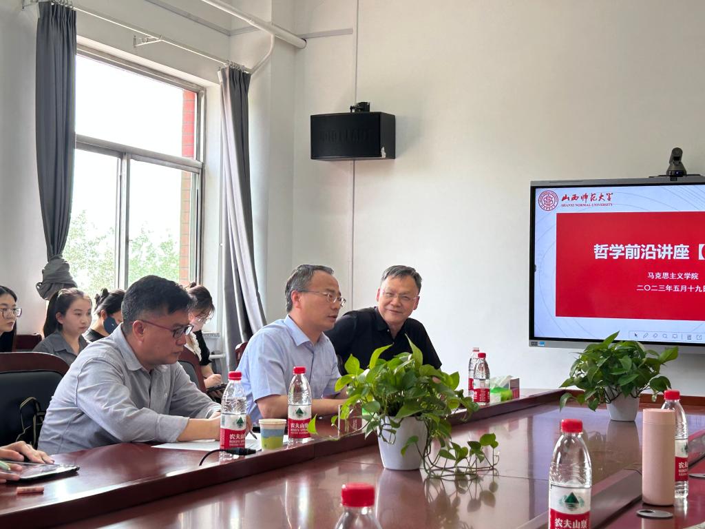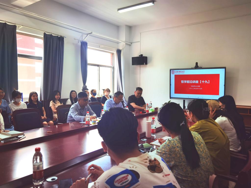 5月19日下午,中国人民大学文学院曾艳兵教授应邀来世界杯官网作第十九次“哲学前沿讲座”,主题为“哲学化的文学与文学化的哲学——以存在主义文学为例”。讲座由世界杯官网副教授聂静港主持,文学院副教授高超与谈。