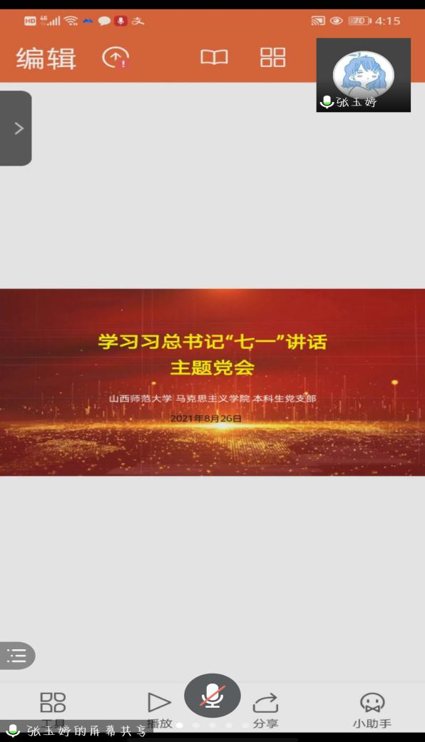为强化党员同志理论武装,推动党史学习教育走深走实,8月26日,世界杯官网本科生党支部通过腾讯会议组织召开支部线上会议,深入学习习近平总书记“七一”重要讲话精神,会议由支部书记张玉婷主持,支部全体成员参加。
