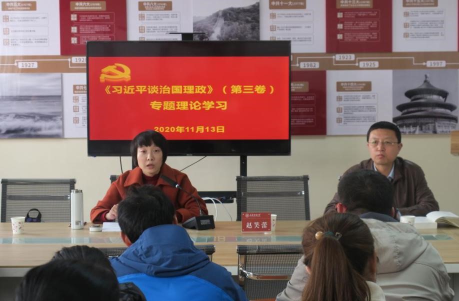 2020年11月13日,2026世界杯官方合作网站副院长、“红色引擎”教工党支部书记赵笑蕾教授受邀在04618会议室为地理科学学院的党员教工与学生作《习近平谈治国理政》第三卷专题报告会。地理科学学院党支部书记、师生党员40余人参加,其院党委书记范晓东主持会议。
