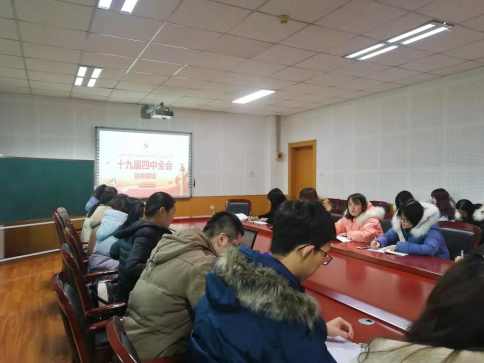 12月19日下午,世界杯官网研究生第一党支部在科学会堂A-508会议室开展以“学习党的十九届四中全会精神“为主题的系列党日活动。全体党员参加学习,支部书记王艳主持。