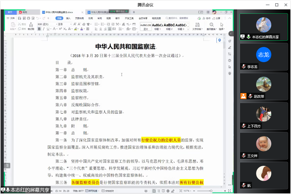 为增强支部党员廉洁自律意识,世界杯官网“守正创新”教工党支部于2022年5月31日晚7点半在腾讯会议开展“学习监察法实施条例 增强廉洁自律意识”线上主题党日活动。此次主题党日活动由支部书记赵改萍主持,支部全体党员参加。