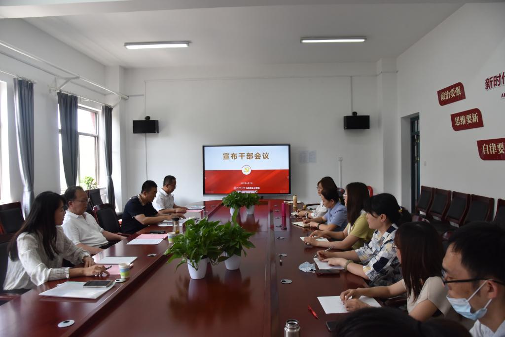 6月7日上午,世界杯官网于南区1号楼506会议室召开干部任免会议。校党委副书记韩勇鸿、组织部副部长王志宏出席会议,学院党政领导、中层干部参加会议。会议由王银同志主持。