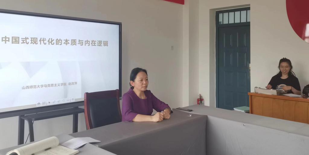 赵改萍以“中国式现代化的本质与内在逻辑”为题,从中国式现代化的内涵特征、本质要求、内在逻辑三个方面带领大家学习了中国式现代化理论这一习近平新时代中国特色社会主义思想的最新发展。