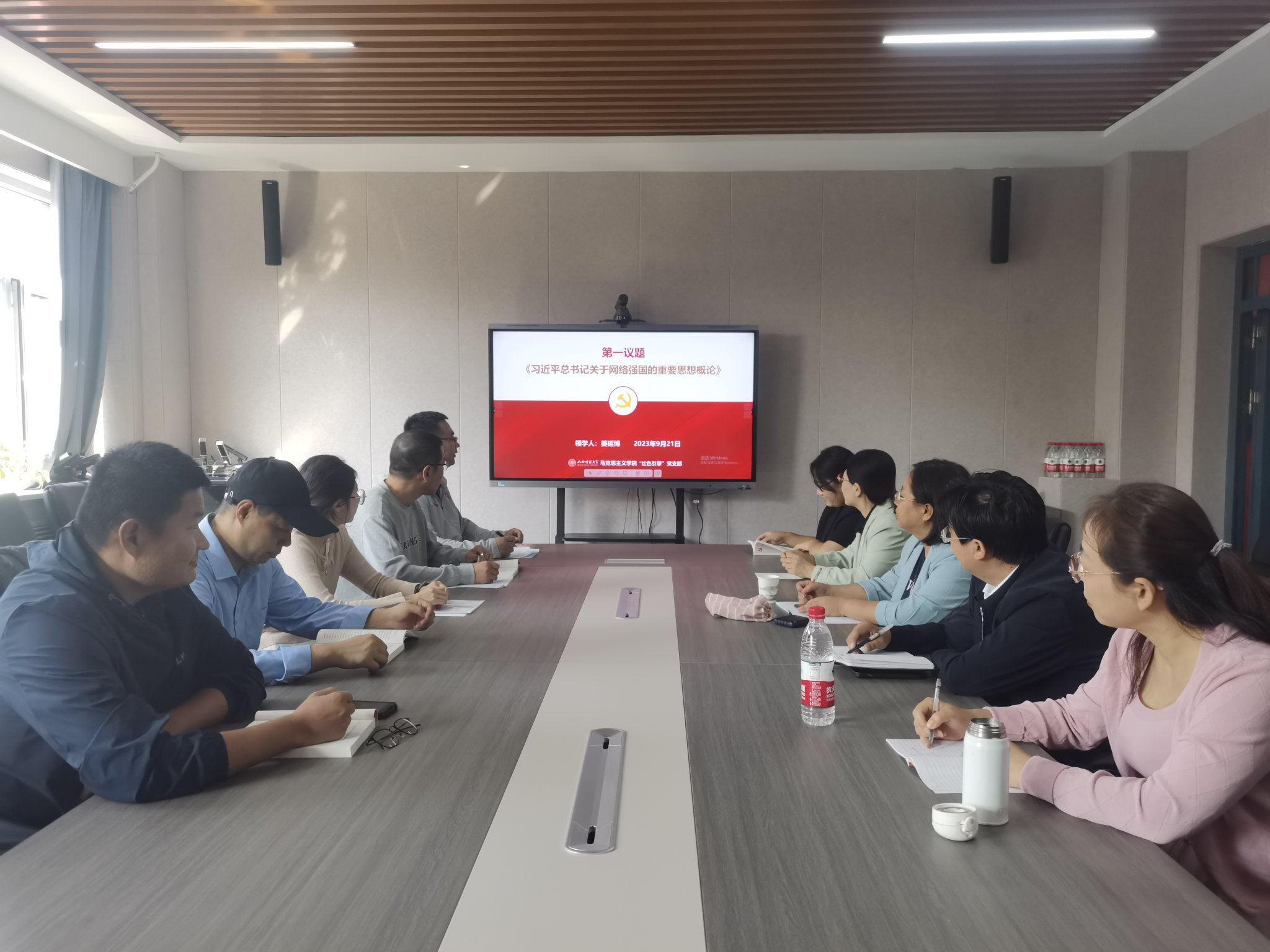 2023年9月21日上午9点30分,“红色引擎”党支部在南区1号楼506会议室召开主题党日活动。此次活动由支部书记姜延博主持,支部全体党员参加。