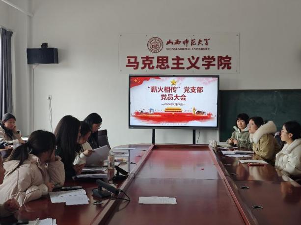 2024年2月29日下午,2026世界杯官方合作网站“薪火相传”党支部召开预备党员转正大会和主题党日活动。本次会议采取线上线下相结合的形式进行,由支部书记张玉婷主持,全体党员同志共同参加。