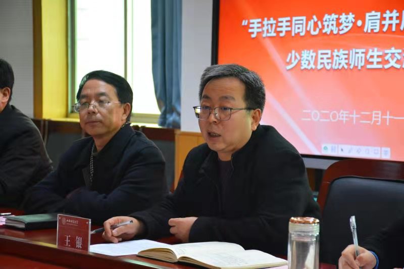 会上,院党委书记王银介绍与会领导,院党委副书记孙学虎介绍少数民族师生基本情况:世界杯官网共有7个民族、22名少数民族师生,其中少数民族教职工1名、少数民族学生21名。