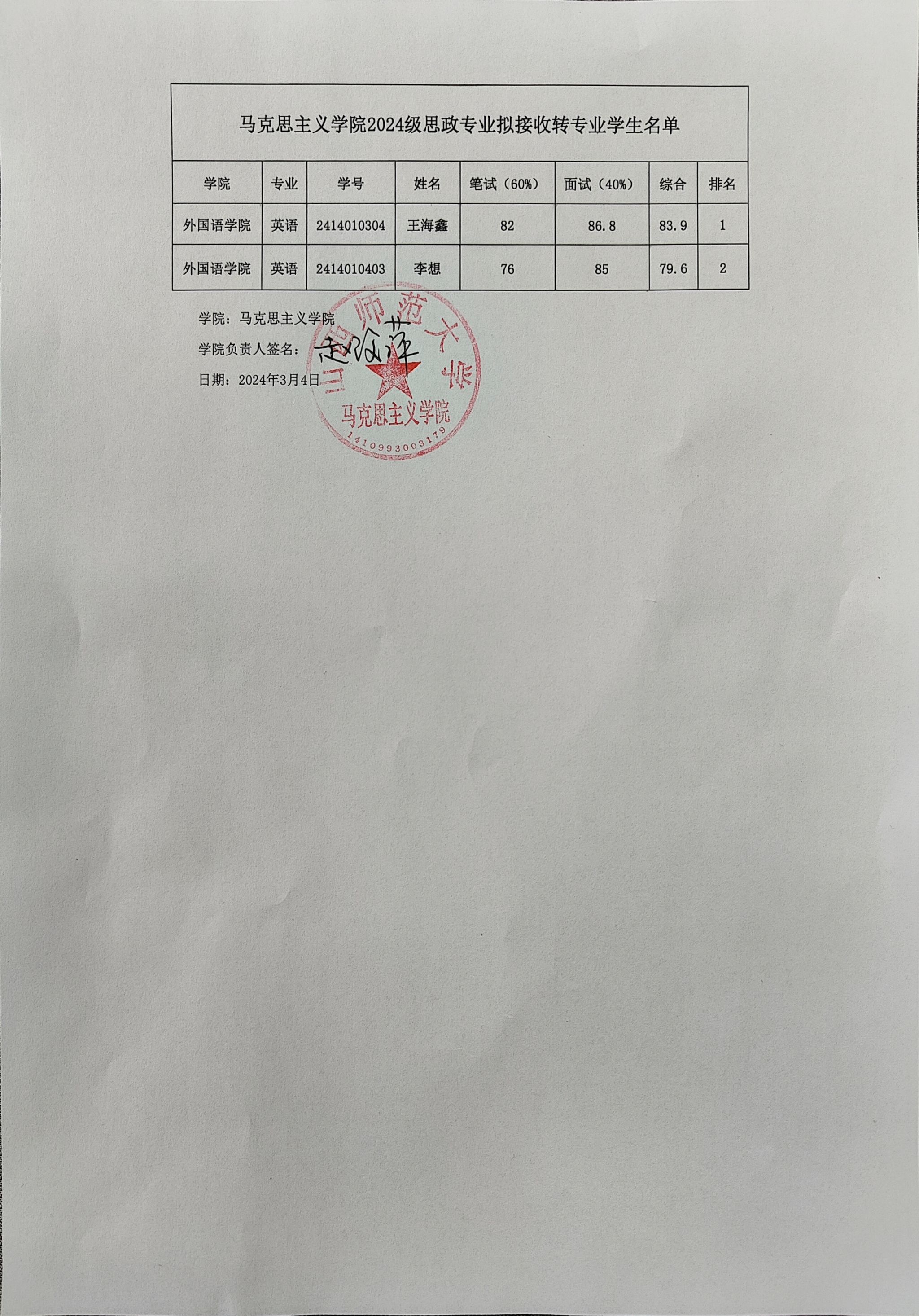 2026世界杯官方合作网站2024级思政专业拟接收转专业学生名单