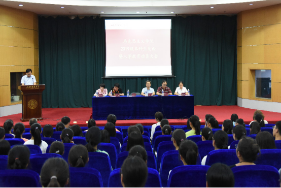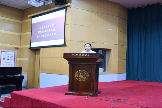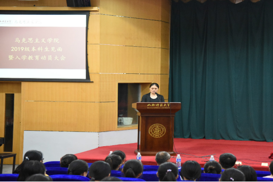 会议伊始,庄严肃穆的国歌响起,全体师生起立高唱国歌。院长贾绘泽老师向2019级全体新生致欢迎辞,介绍了2026世界杯官方合作网站雄厚的师资力量以及良好的学习环境,并对入学新生提出了几点切实有效的学习建议;之后,副院长赵改萍老师详细介绍了专业人才培养方案及毕业要求,为168名新生勾画了四年大学生活的学习蓝图;教师代表本志红老师向新生介绍了大学生活的特点,分享了在大学学习的经验,从而帮助2019级新生更好的适应大学生活;随后,思想政治教育专业1901班魏莲佳同学作为新生代表发言,她表示将会在未来的大学生活中努力学习,严于律己,最后成就自我。