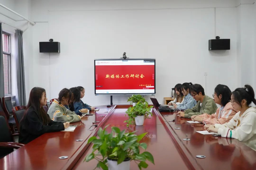 为进一步提高世界杯官网融媒体中心成员的工作能力和宣传素养,推动世界杯官网宣传工作高质量发展,世界杯官网于4月8日在南区1号楼506教室举办新媒体工作研讨会。本次会议由融媒体中心负责人郭枥主持,校宣传部相关负责人主讲,院团委副书记张瑞琴出席,世界杯官网融媒体中心全体成员共同参与。