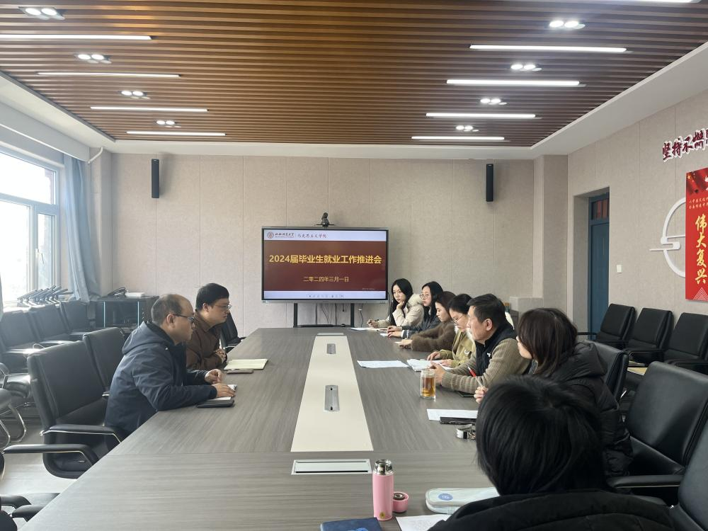 院党委副书记杜辉就2024届毕业生就业工作进行详细部署,并提出以下几点要求。一要提高站位、扛起责任。毕业班辅导员作为学生成长成才的人生导师,要充分认识就业工作重要性,充分利用各种资源,进一步优化指导服务,引导毕业生树立正确的就业观;二要聚焦重点、精准帮扶。毕业班辅导员要了解政策动向,通过就业主题班会、座谈会等形式,详细了解毕业生面临的各种问题,鼓励同学们结合考研情况、自身优势等条件,制定切实的求职计划。三要谋篇布局、提高实效。要立足学院实际,聚焦立德树人根本任务,解放思想,提早谋篇布局,大力拓展就业岗位,夯实责任担当,引领推动2024届毕业生高质量充分就业。