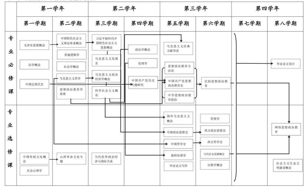 本专业以“厚基础、宽专业、重实践、强素养 ”为办学理念,实施综合性人才培养模式。以培养优秀中学思政课教师为己任,强化师范教育,具有鲜明师范特色; 以浓厚的山西优秀文化资源为依托,开设相关课程,具有鲜明地方文化特色;课程实践与课外实践相结合、校内实践和社会实践双联动,具有鲜明实践特色。